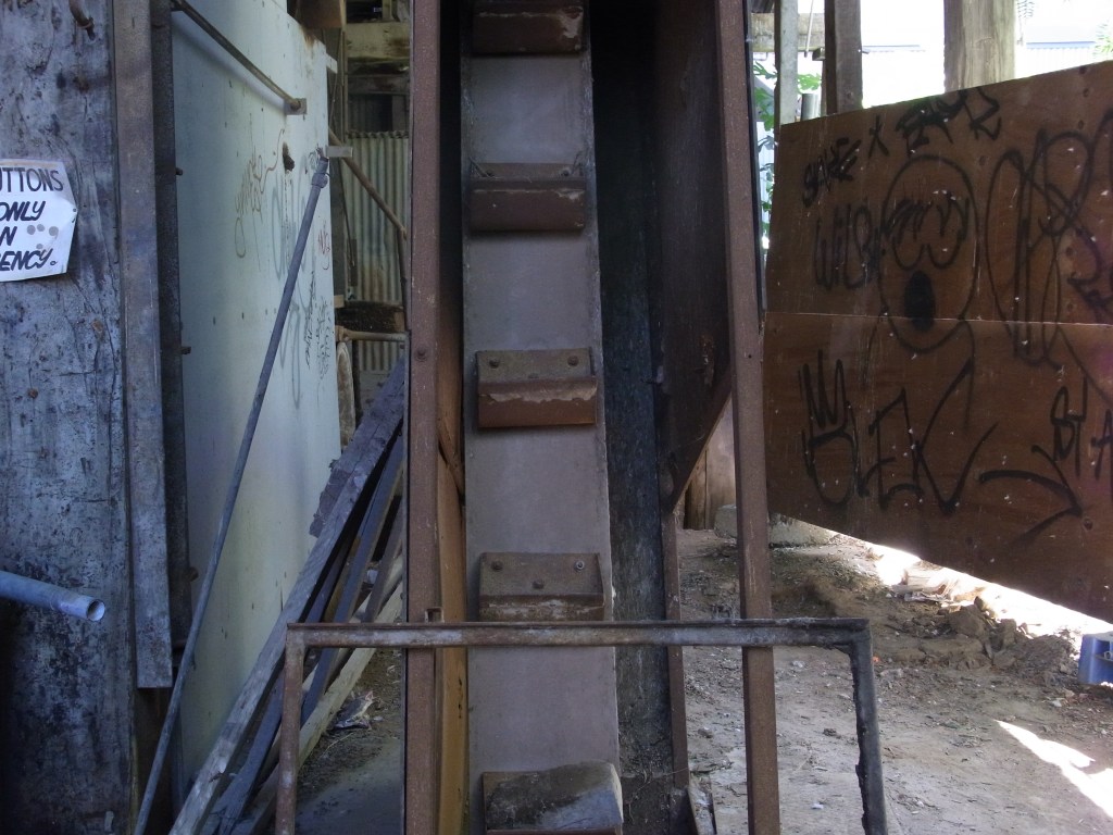 Part of the conveyor system that moved materials upwards in the Brick Pressing Shed