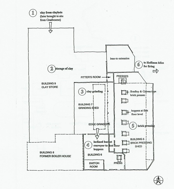 The three storey, corrugated iron clad Pressing Shed was the centre of brick-making activities: It houses a bank of originally steam-driven brick presses, fed from above by giant hoppers and a complex system of chutes, elevators and pulleys. The kilns introduced continuous-firing technology to Australian brick making. The Hoffman kilns and the brick presses together mark the first industrialisation of the brick making process in Australia. The brick section housed the steam engine that once powered the presses. These two buildings, brick presses and feeder systems are of the highest heritage significance and essential to the story of innovation in the Australian brick-making industry.